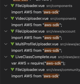 프로젝트에서 동일한 aws-sdk 라이브러리를 import하는 컴포넌트가 상당히 많습니다. 이를 개선해야 빌드 파일의 크기를 줄일 수 있어 보입니다.