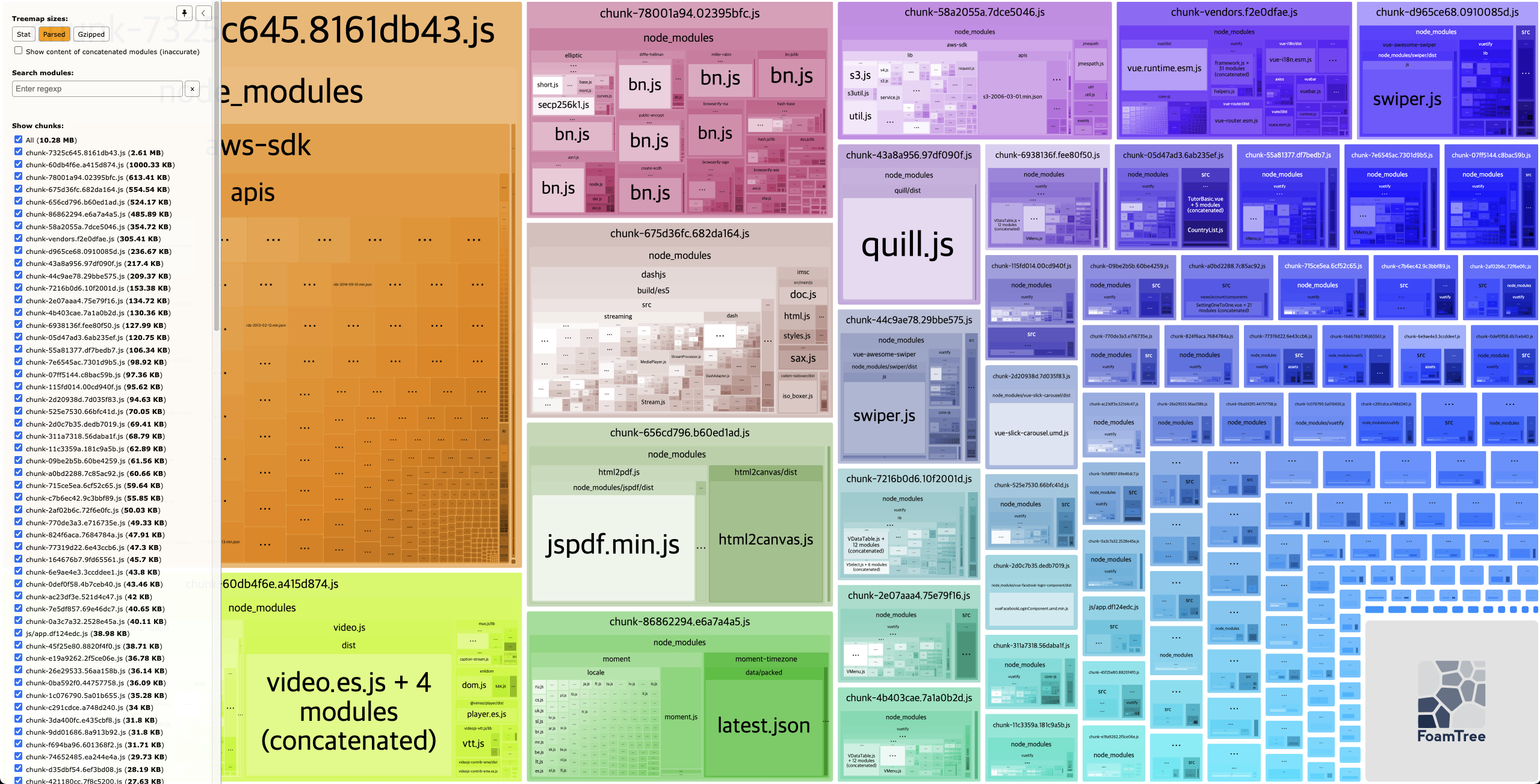 번들링된 파일과 크기를 시각적으로 볼 수 있습니다.