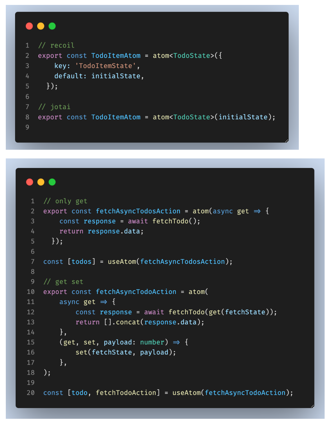 확실히 jotai가 코드량이 적다.