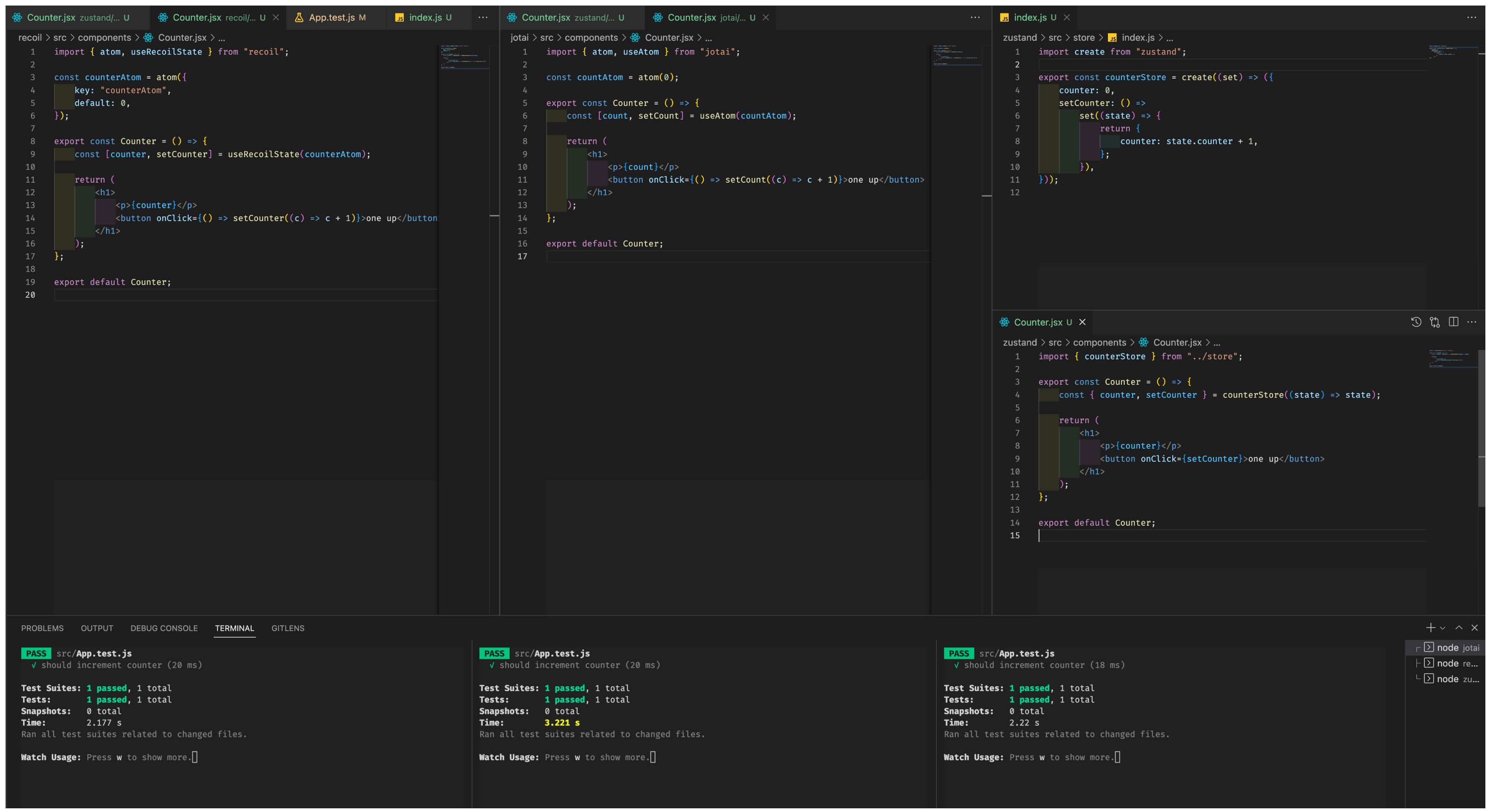 Recoil vs Jotai vs Zustand